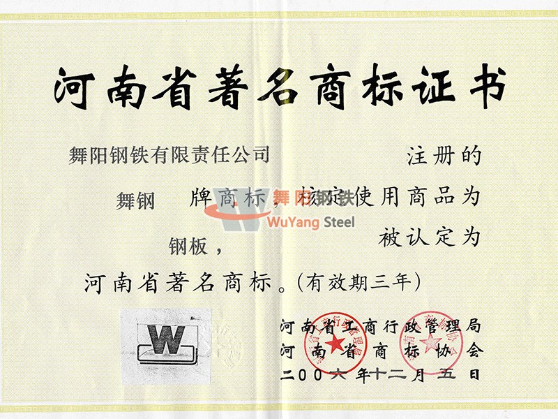 舞陽(yáng)鋼鐵公司-河南省著名商標(biāo)稱號(hào)